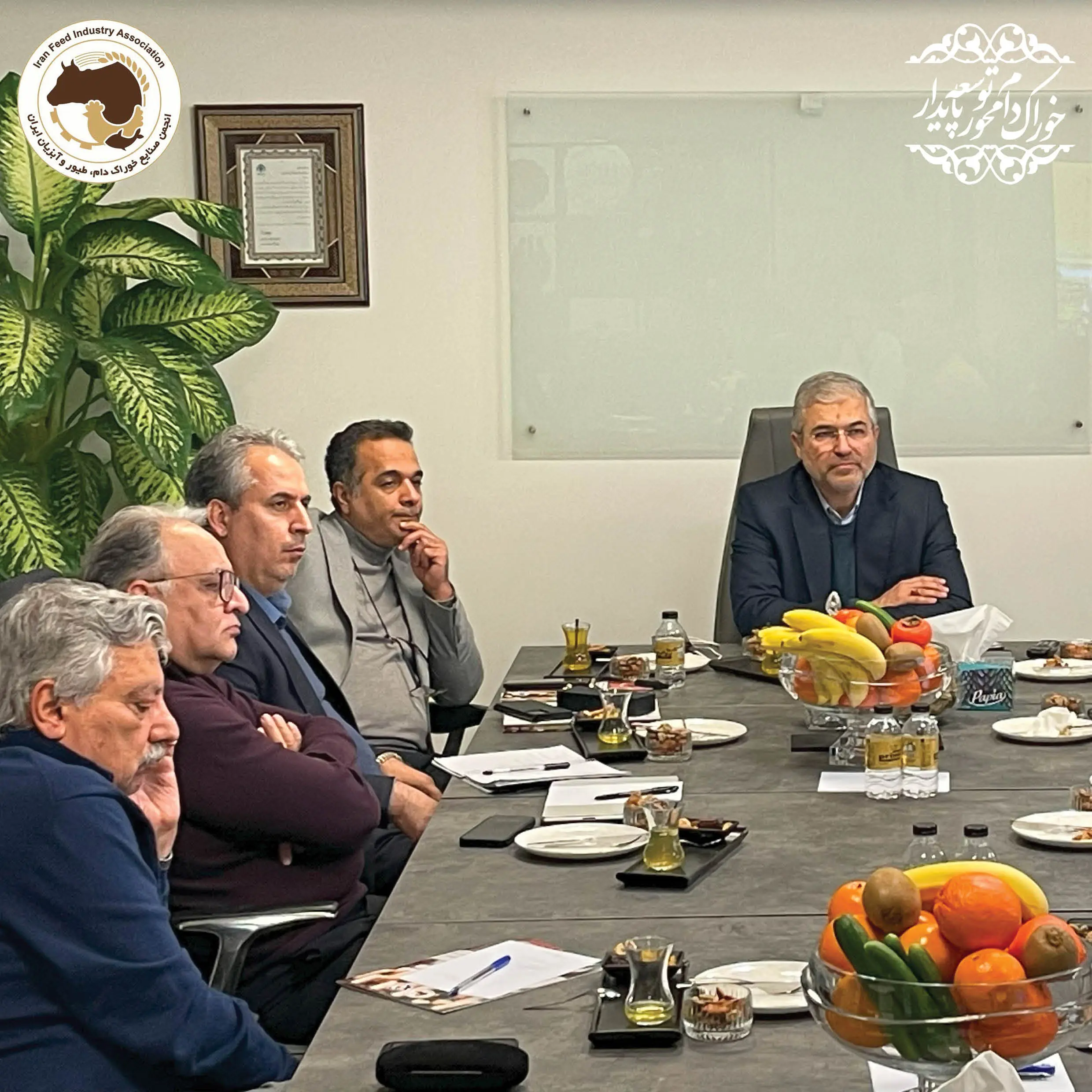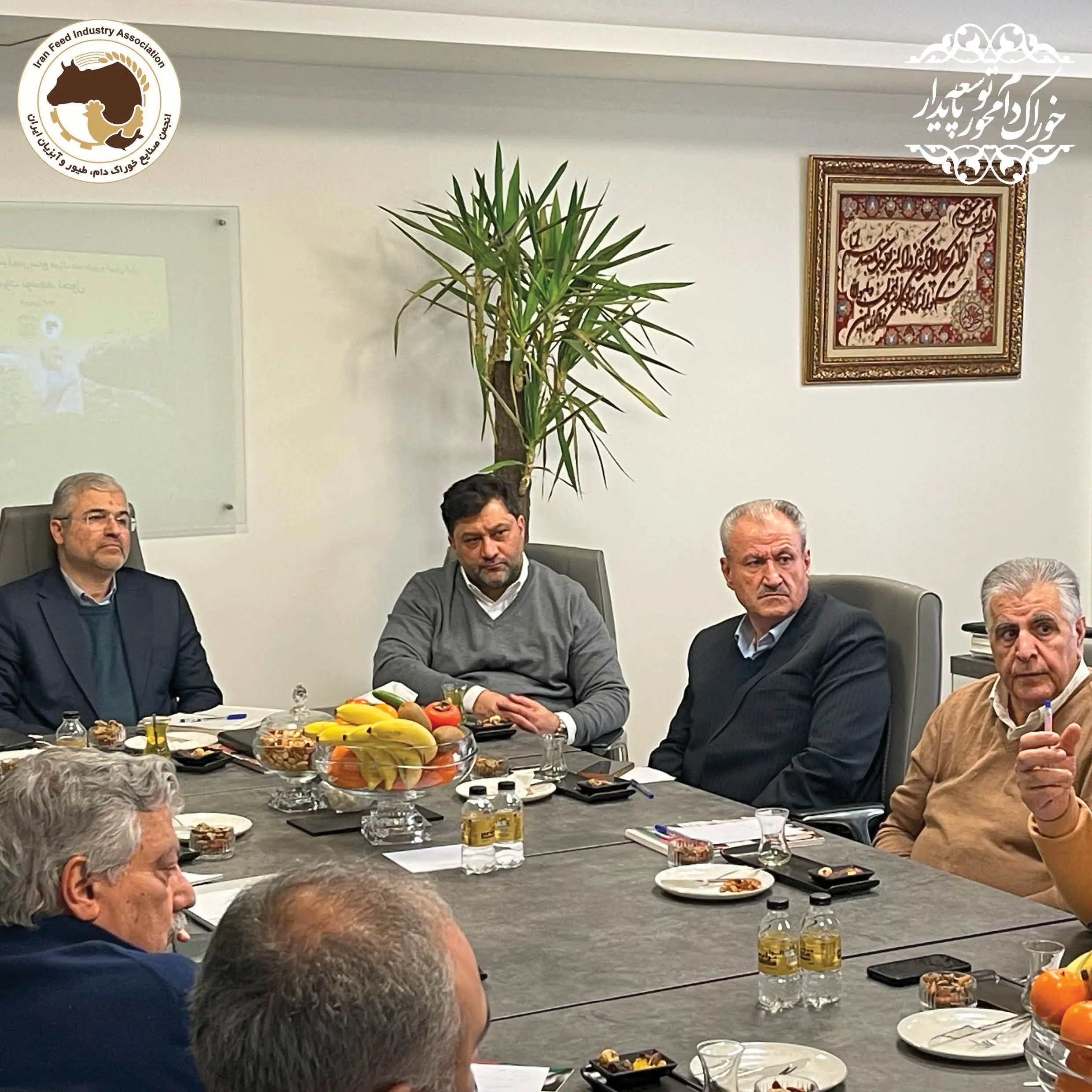 جلسه مشترک هیأت مدیره انجمن صنایع خوراک دام ایران، جناب آقای دکترفلسفی، رئیس فراکسیون کشاورزی مجلس و جناب آقای دکتر سلامی، مدیرعامل محترم شرکت پشتیبانی امور دام کشور در دفتر انجمن